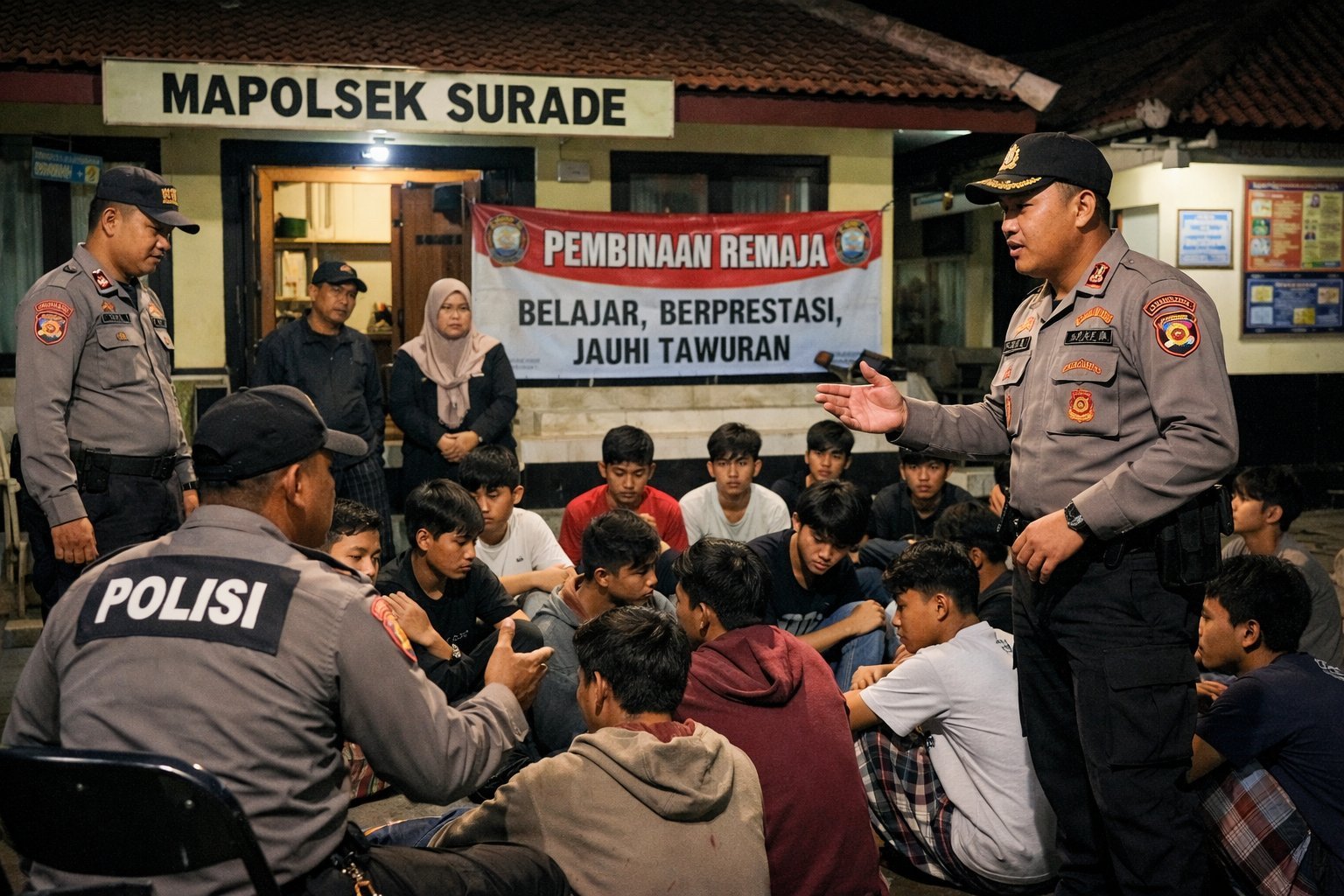 Kapolsek Surade, Iptu Ade Hendra, memimpin langsung penanganan di lapangan. Menurutnya, kehadiran polisi bertujuan menjaga situasi tetap aman serta memberikan pembinaan agar para remaja tidak terjerumus pada perilaku berisiko.