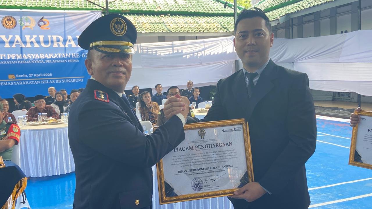 SUKABUMI – Dinas Perhubungan (Dishub) Kota Sukabumi meraih penghargaan dari Kementerian Imigrasi dan Pemasyarakatan RI melalui Kantor Wilayah Direktorat Jenderal Pemasyarakatan Jawa Barat dalam rangka peringatan Hari Bakti Pemasyarakatan (HBP) 2026.