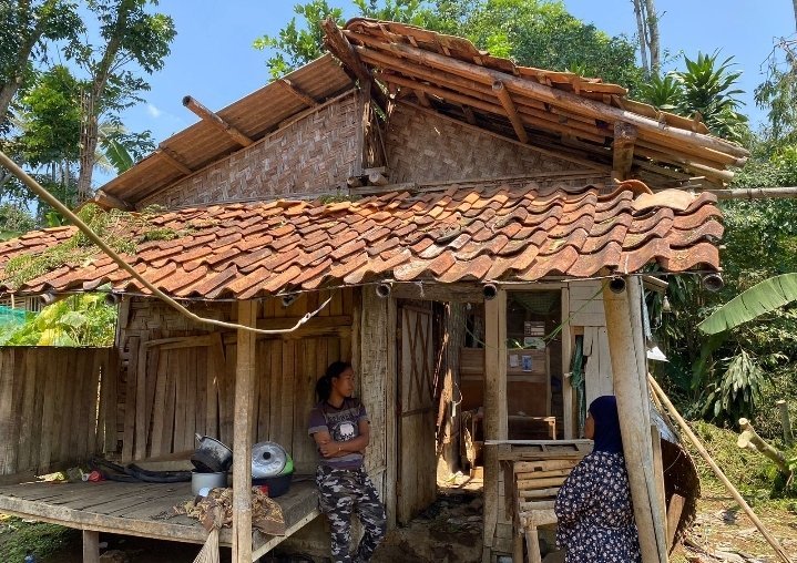 “Kami semua ketakutan, anginnya kencang sekali. Genting pada beterbangan, air masuk dari semua arah,” tutur Rohimah (40), warga Kampung Pasir Kuntul, matanya basah menatap rumah yang kini tanpa atap.