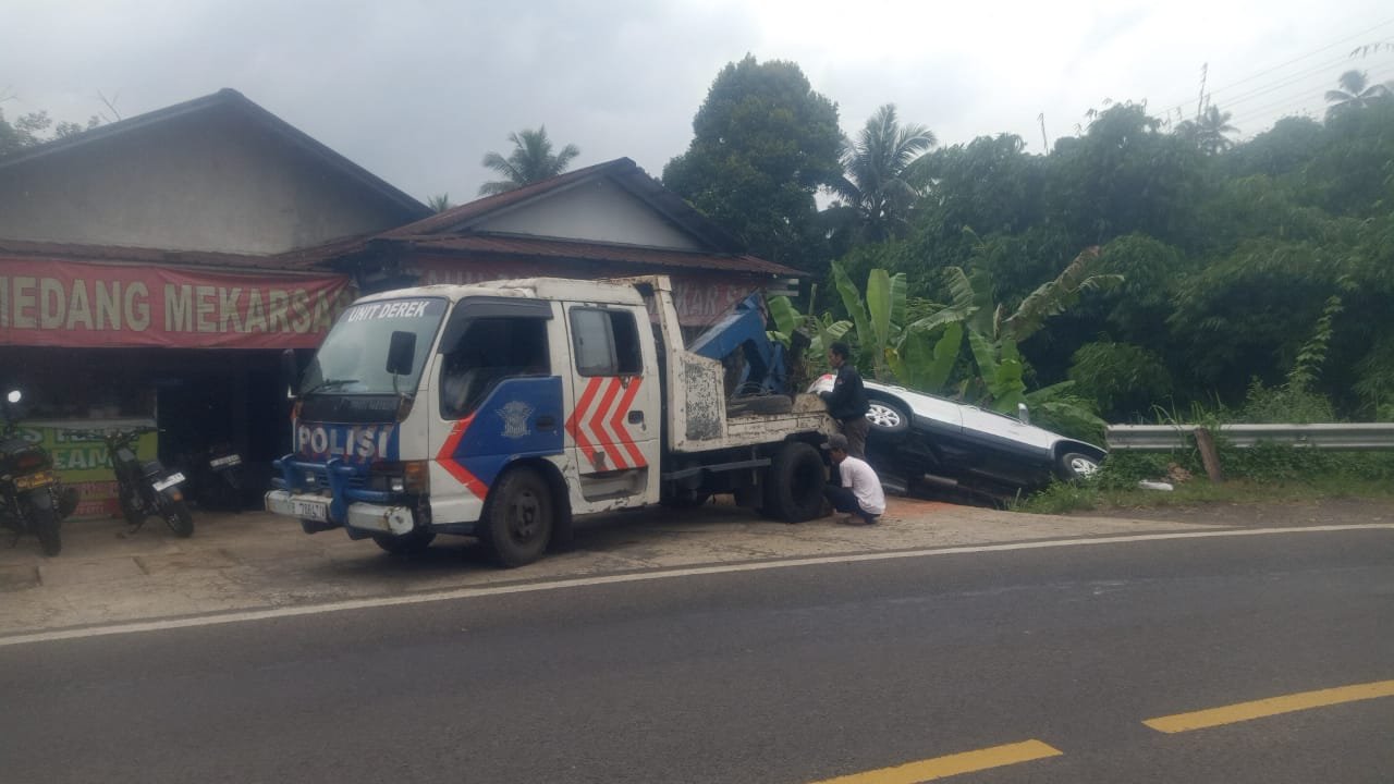 Ia menjelaskan, kendaraan tersebut dikemudikan oleh Wachyu Hafid dengan penumpang Mia Kurniasih. Saat kejadian, keduanya berada di dalam kendaraan dan tidak mengalami luka.