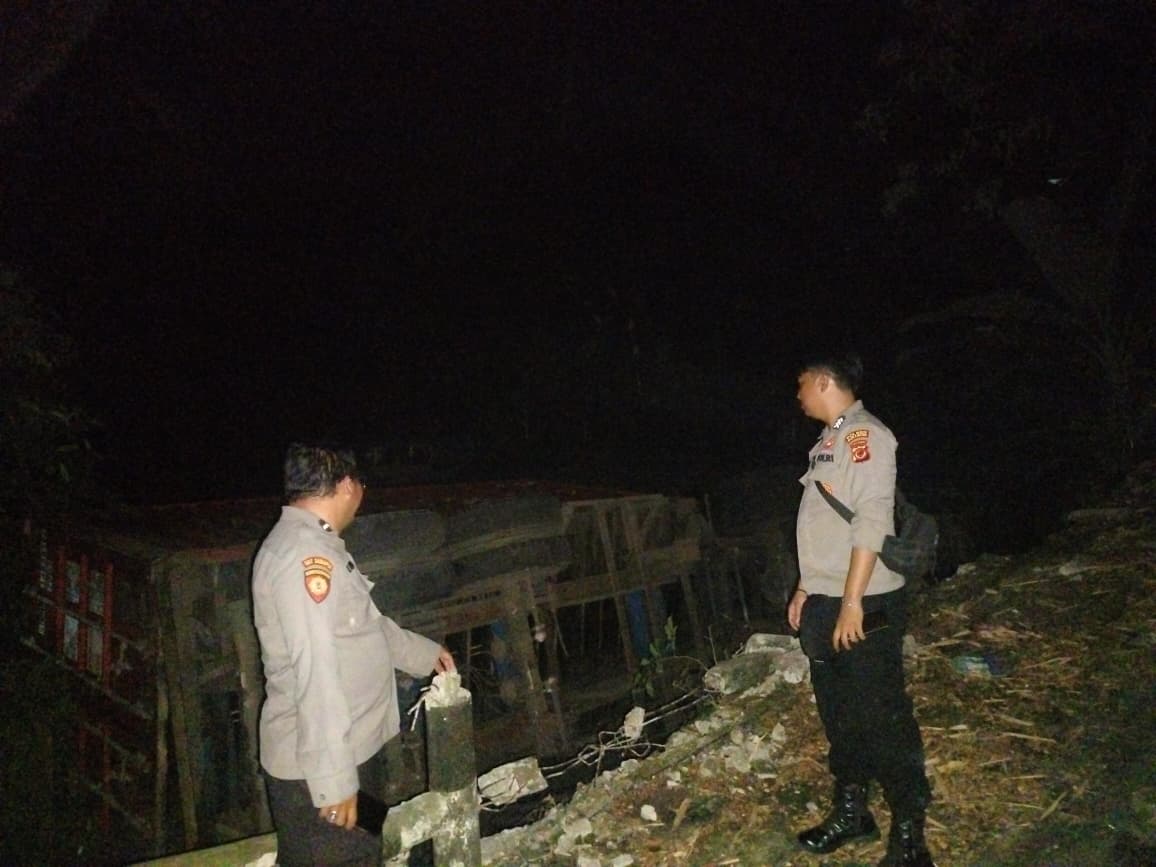 SUKABUMI – Sebuah truk trailer mengalami kecelakaan tunggal di jalur menuju kawasan wisata Ocean Queen, Kecamatan Cisolok, Kabupaten Sukabumi, Kamis (23/4/2026) sekitar pukul 20.00 WIB.