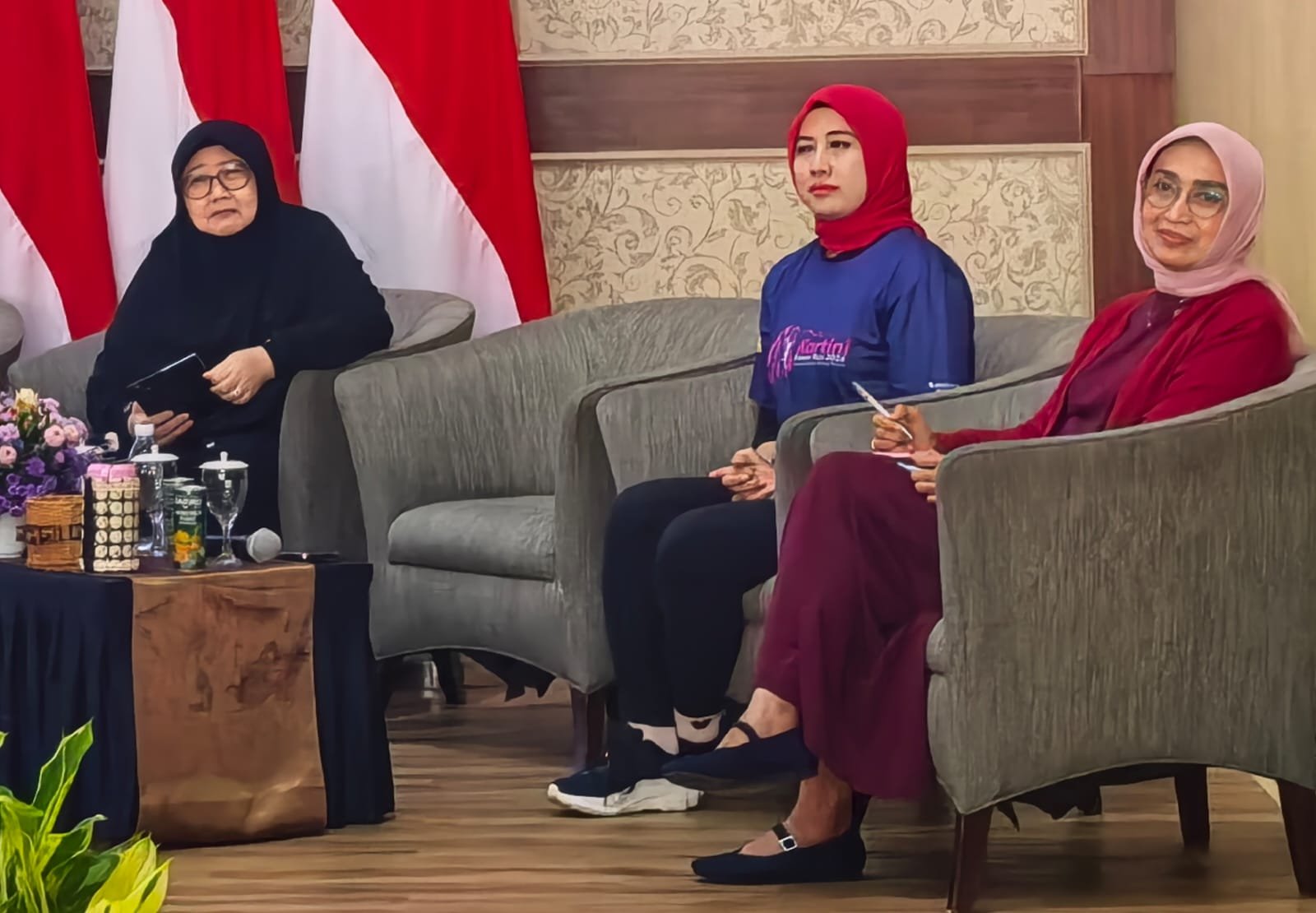 Mulyani Hadiwijaya (Dea bakery), Rektor UIN Maliki Prof Ilfi Nur Diana, Ridha Heli Suyanto (istri wakil wali kota Batu), dan Ira Puspadewi di acara Kartini Talk Show Hari Kartini bertema Strong Woman, Strong Nation di Batu, 12 April 2026.–