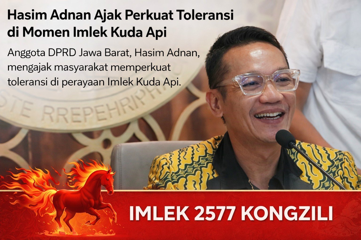 SUKABUMI – Anggota DPRD Provinsi Jawa Barat, Hasim Adnan, mengajak seluruh elemen masyarakat untuk terus memperkuat nilai toleransi dan persatuan dalam momentum peringatan Tahun Baru Imlek 2577 Kongzili yang kali ini memasuki shio Kuda Api.