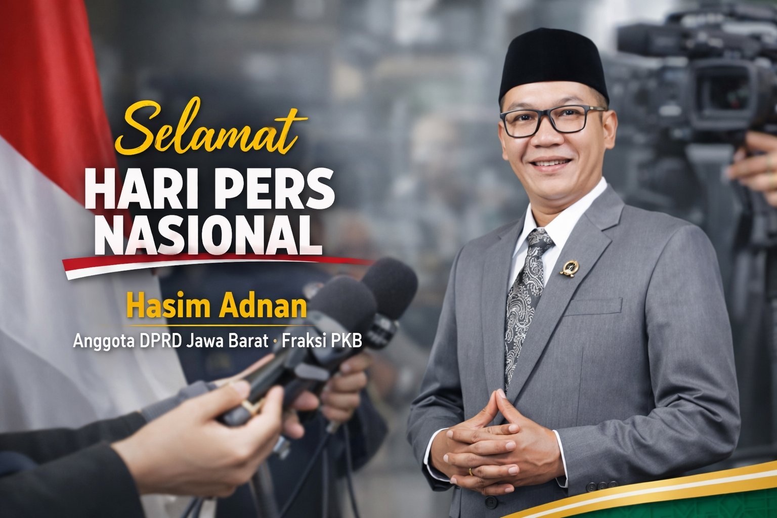 SUKABUMI – Anggota DPRD Provinsi Jawa Barat dari Fraksi Partai Kebangkitan Bangsa (PKB), Hasim Adnan, menyampaikan ucapan Selamat Hari Pers Nasional (HPN) kepada seluruh insan pers di Indonesia. Ia menegaskan bahwa pers memiliki peran strategis dalam menjaga demokrasi, menyuarakan kepentingan rakyat, serta mengawal jalannya pemerintahan.