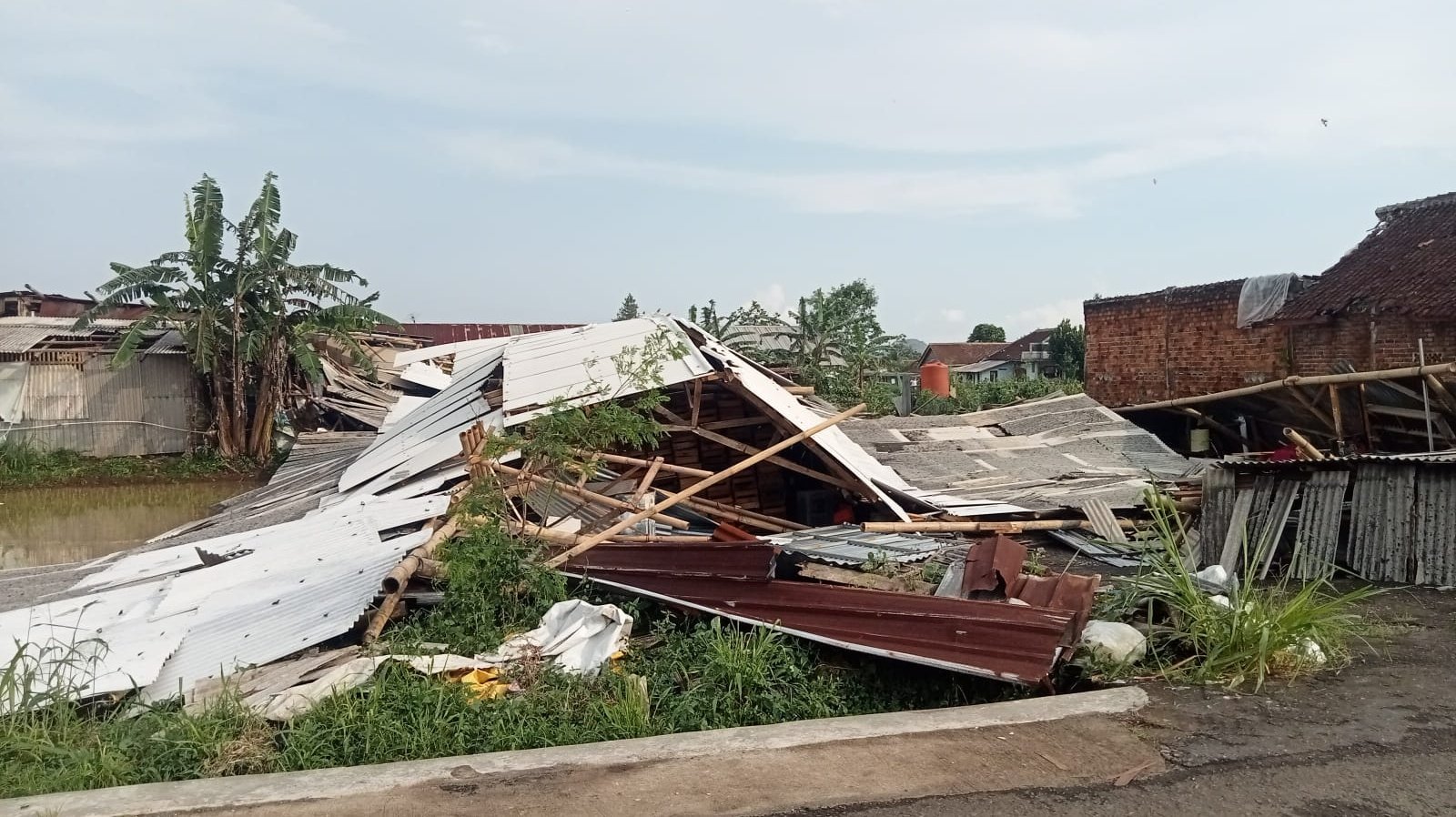 Bahkan satu di antaranya bangunan gudang meubel ambruk. Juga dilaporkan sejumlah pepohonan tumbang.