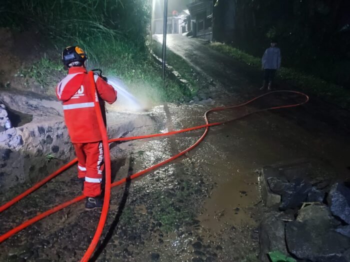 “Hujan intensitas tinggi yang terjadi menyebabkan tanah tebing irigasi longsor dan menyumbat aliran air, sehingga meluap dan menggenangi rumah warga.” ujar Daeng dalam laporan (Pusdalops-PB) BPBD Kabupaten Sukabumi (6/4/2026).