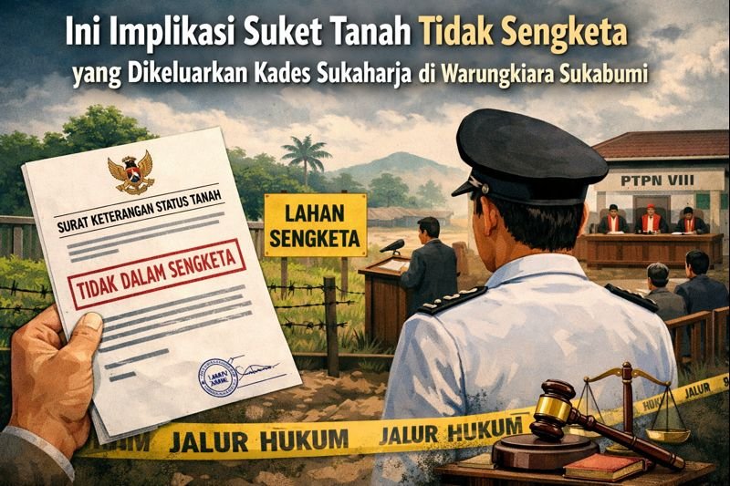 INILAHSUKABUMI.COM – Terbitnya Surat Keterangan Status Tanah (Suket) yang menyatakan lahan di Desa Sukaharja, Kecamatan Warungkiara, Kabupaten Sukabumi, tidak dalam sengketa, memicu polemik serius di tengah proses persidangan antara ahli waris Natadipura dan PTPN VIII Cibungur di Pengadilan Negeri Cibadak. Dokumen desa yang keluar saat perkara masih berjalan ini kini menjadi objek perhatian publik karena dinilai berpotensi memengaruhi arah pembuktian hukum.
