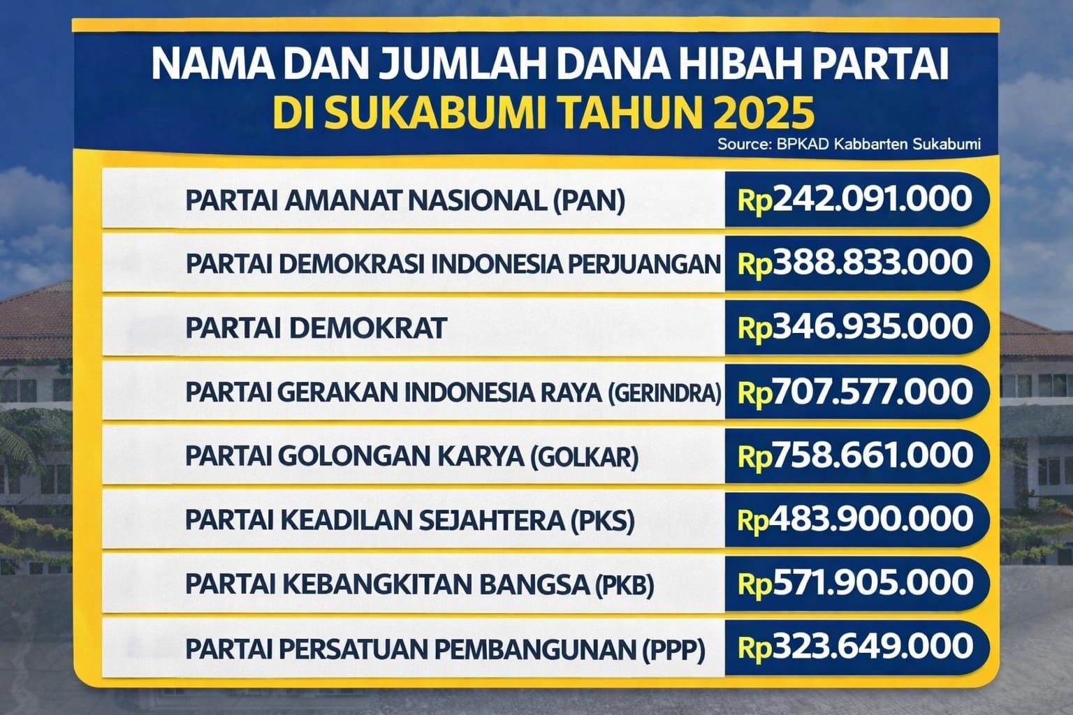 The post Inilah Nama dan Jumlah Dana Hibah yang Diterima Partai Politik di Sukabumi Tahun 2025 first appeared on Inilah Sukabumi.