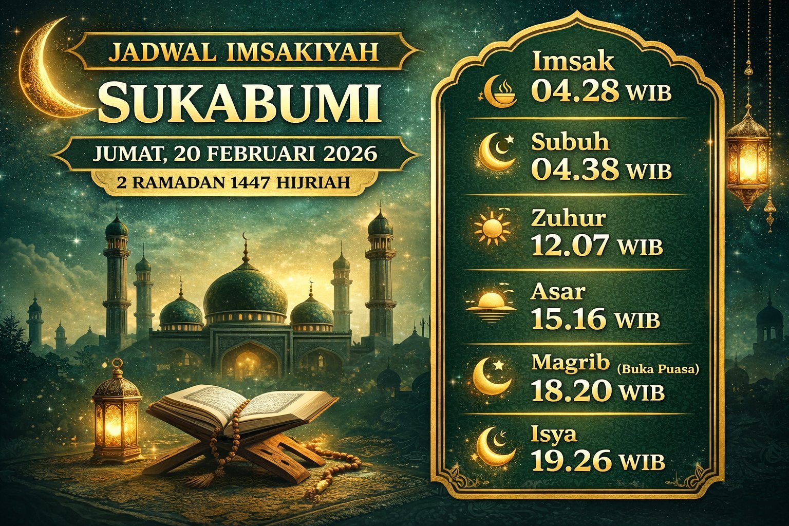 Jadwal imsakiyah menjadi pedoman penting bagi umat Muslim untuk menjalankan ibadah puasa secara tepat waktu, mulai dari sahur hingga berbuka puasa. Berdasarkan jadwal resmi, waktu imsak di wilayah Sukabumi pada Jumat, 20 Februari 2026, jatuh pada pukul 04.28 WIB, dilanjutkan waktu Subuh pada pukul 04.38 WIB.