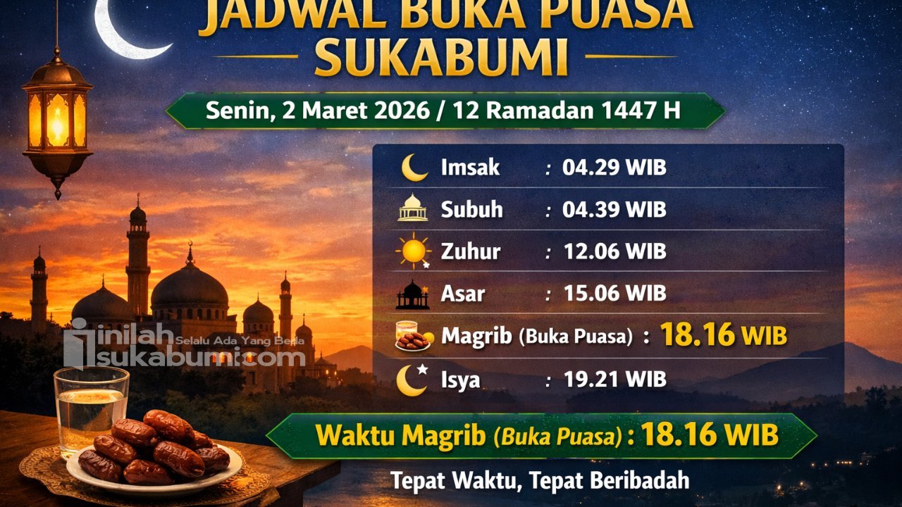 INILAHSUKABUMI.COM – Umat Muslim di wilayah Sukabumi, Jawa Barat, Indonesia, menjalankan ibadah puasa hari ke-12 Ramadan 1447 Hijriah pada Senin, 2 Maret 2026. Mengetahui jadwal imsakiyah dan waktu buka puasa menjadi hal penting agar ibadah dapat dilaksanakan secara tepat waktu.
