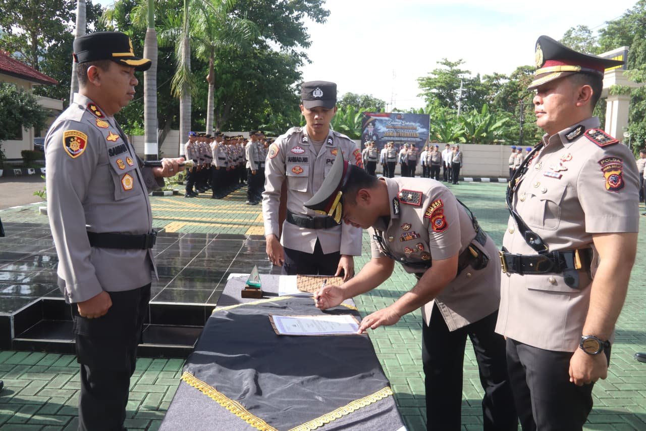 Prosesi serah terima jabatan Kasatlantas menjadi bagian dari rotasi pejabat utama di lingkungan Polres Sukabumi. Kegiatan ini langsung dipimpin Kapolres Sukabumi AKBP Samian, para pejabat utama, Kapolsek jajaran, serta personel dari berbagai satuan fungsi.