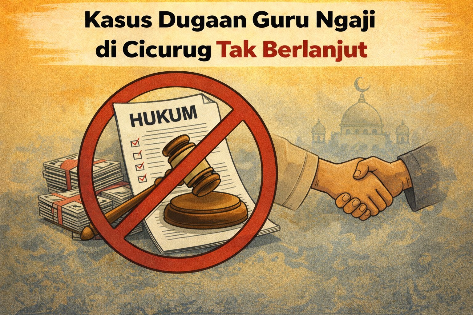 INILAHSUKABUMI.COM – Kasus dugaan kekerasan seksual yang melibatkan guru ngaji berinisial MF (23) di Kecamatan Cicurug, Kabupaten Sukabumi, dipastikan tidak berlanjut ke ranah hukum. Perkara ini diselesaikan melalui musyawarah kekeluargaan antara keluarga terduga pelaku dan keluarga korban.