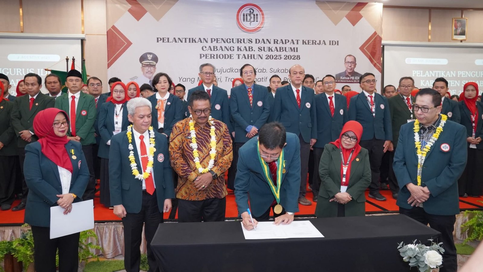 Hal itu pasca dilantik bersama jajaran pengurus IDI Cabang Kabupaten Sukabumi di salah satu hotel di Kota Sukabumi, Sabtu (2/8). Hadir dalam kesempatan itu, Bupati Sukabumi Asep Japar didampingi Sekda Ade Suryaman, bersama kepala perangkat terkait lainnya.