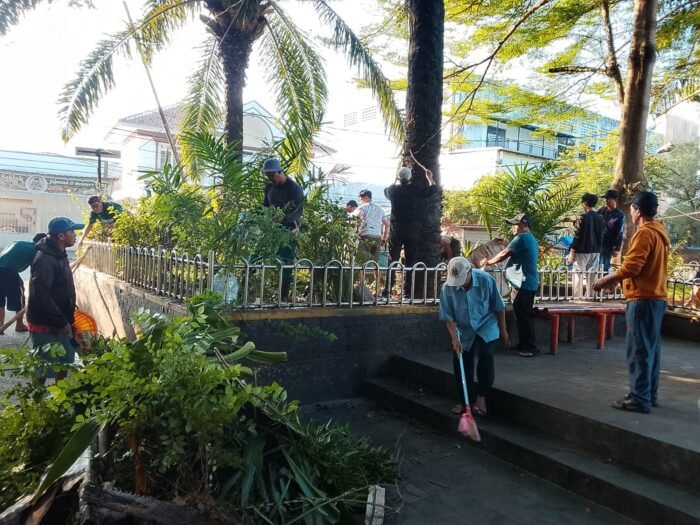 SUKABUMI — Semangat gotong royong ditunjukkan warga bersama pedagang kaki lima (PKL), serta aparat dalam aksi bersih-bersih di kawasan Alun-Alun Palabuhanratu, Jumat (24/4/2026). Kegiatan ini melibatkan pengurus RT/RW Kaum Raya serta dukungan dari sejumlah instansi pemerintah.