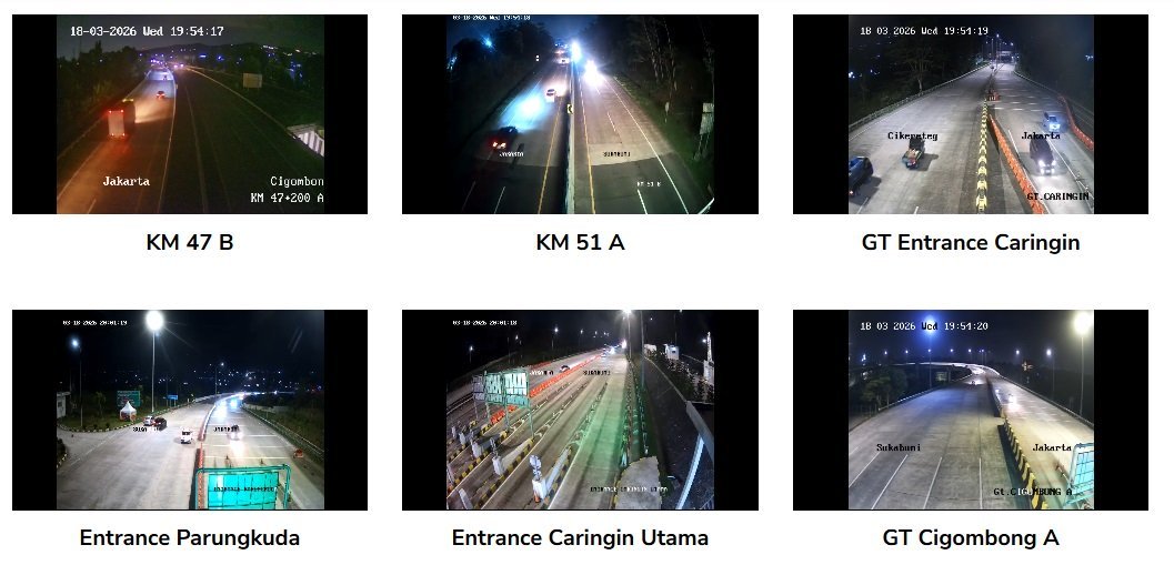 SUKABUMI – Sejumlah ruas Tol Bogor–Ciawi–Sukabumi (Bocimi) terpantau lenggang pada Rabu (18/3/2026) malam. Berdasarkan pantauan kamera pengawas, arus kendaraan di Exit Tol Parungkuda, Caringin, hingga Cigombong terlihat ramai lancar tanpa hambatan berarti.