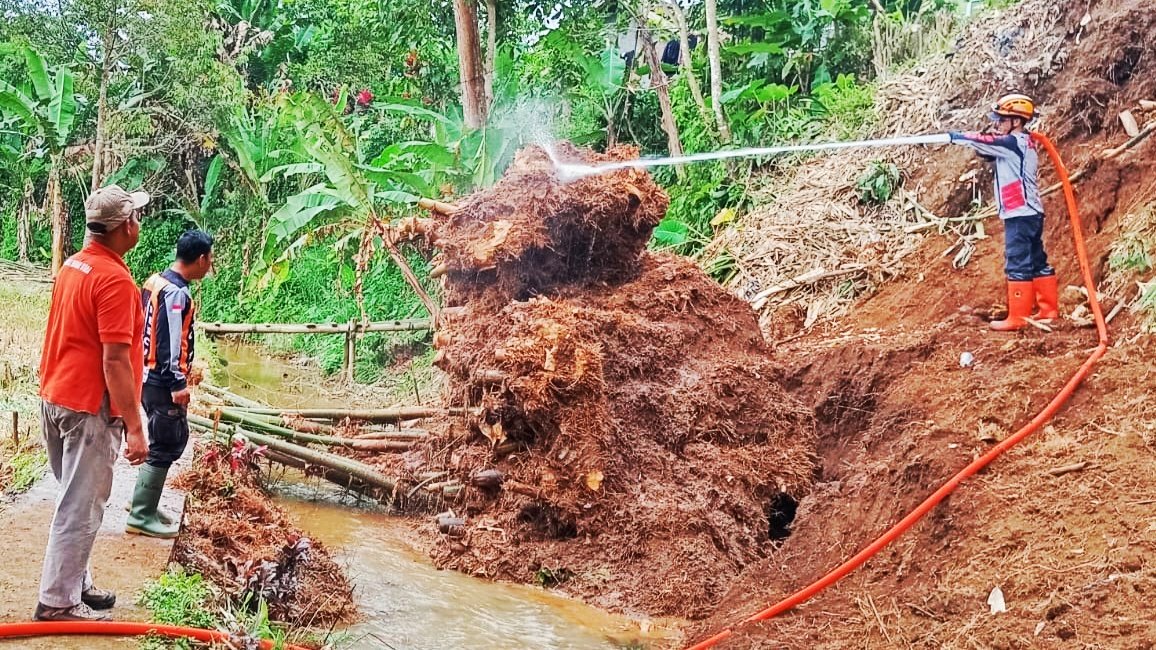 Ia menuturkan awalnya warga sudah berupaya evakuasi secara swadaya dengan alat seadanya. Namun, karena volume material terutama rumpun bambu cukup besar, hari ini dilakukan proses finishing dengan alat yang lebih lengkap.