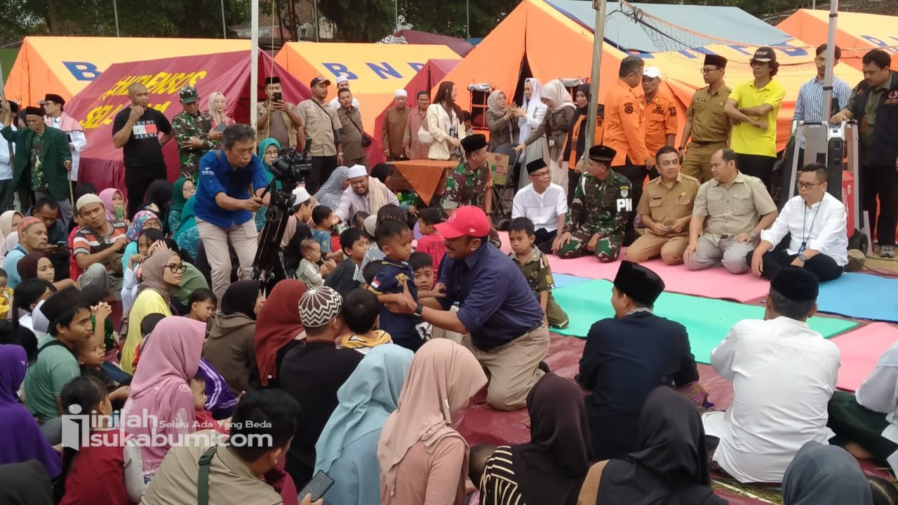 Bupati Sukabumi datang bersama jajaran Pemerintah Kabupaten Sukabumi, unsur Forkopimda, pihak Bank BJB, serta kepala desa setempat untuk menemui langsung warga yang masih tinggal di pengungsian. Kehadiran tersebut menjadi bentuk perhatian pemerintah daerah kepada masyarakat yang terdampak bencana pergerakan tanah.