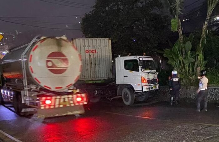 SUKABUMI – Arus lalu lintas di Jalan Raya Sukabumi–Bogor sempat tersendat pada Senin malam, 2 Maret 2026. Sebuah truk kontainer bermuatan batu alam mogok ditanjakan Pamuruyan, Kecamatan Cibadak, Kabupaten Sukabumi.
