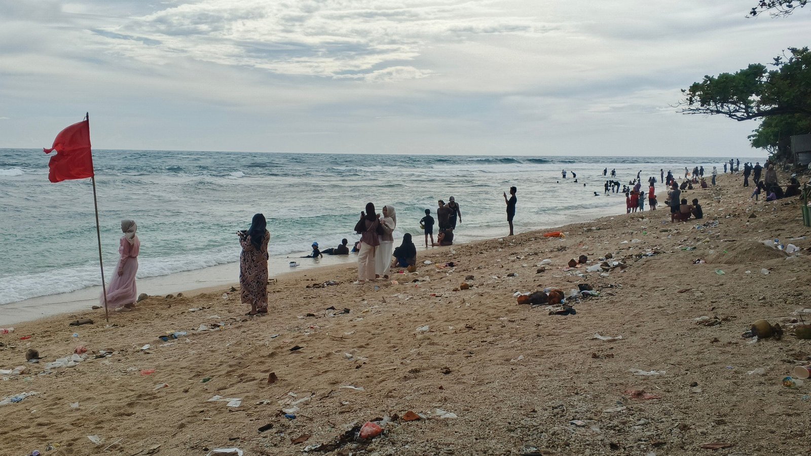 Sejumlah petugas gabungan terlihat berjaga di kawasan pantai untuk mengatur arus lalu lintas dan memastikan keamanan wisatawan. Pengunjung juga diimbau untuk tetap berhati-hati, terutama saat beraktivitas di area laut, mengingat ombak pantai selatan yang cukup besar.