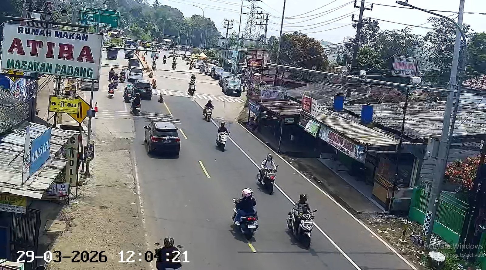 Arus kendaraan yang bergerak dari arah Cibadak menuju Bogor tampak melaju tanpa hambatan. Garis marka jalan terlihat jelas dengan jarak antar kendaraan yang sangat aman, didominasi oleh kendaraan roda dua dan mobil pribadi.