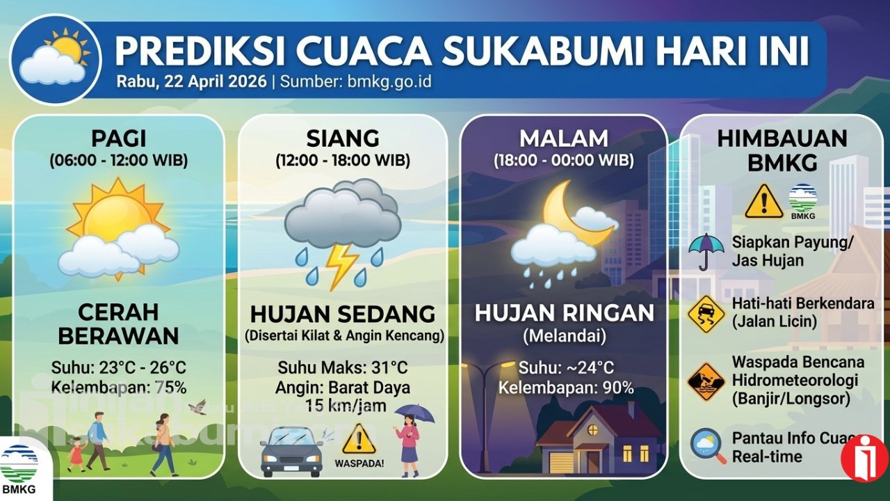 The post Prediksi BMKG untuk Cuaca Sukabumi Hari Ini, Rabu 22 April 2026 first appeared on Inilah Sukabumi.