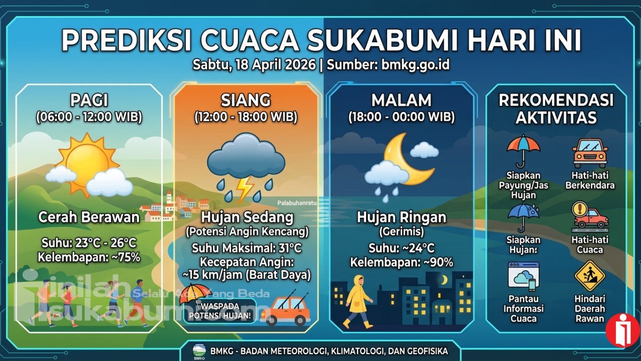 The post Prediksi BMKG untuk Cuaca Sukabumi Hari Ini, Sabtu 18 April 2026 first appeared on Inilah Sukabumi.
