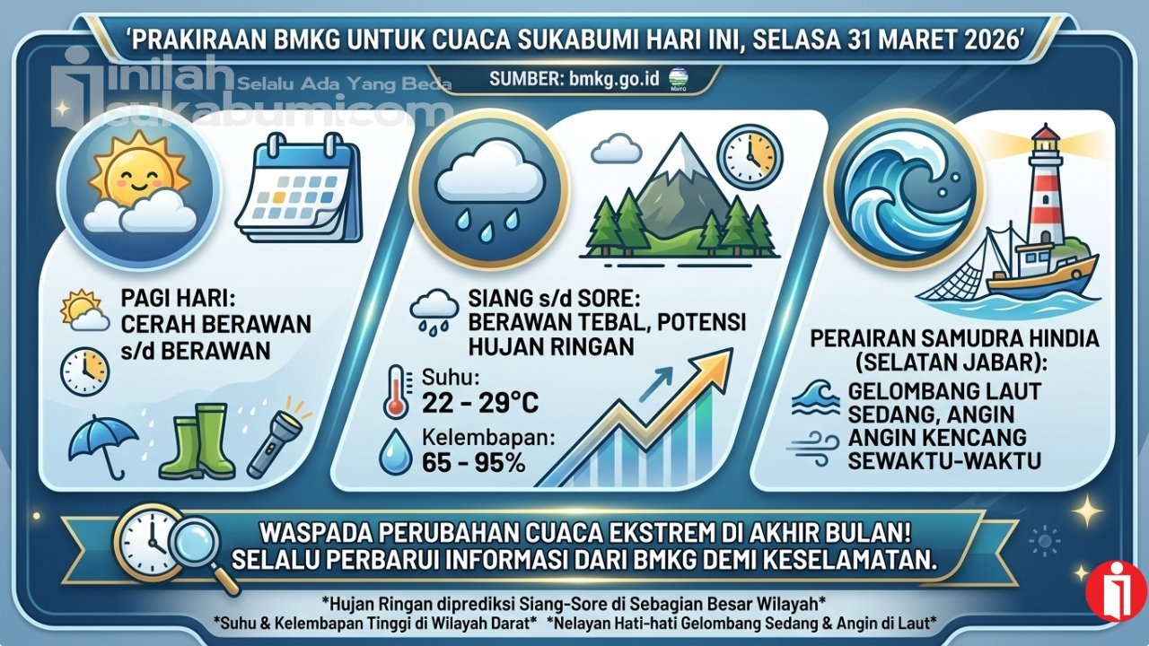 The post Prediksi BMKG untuk Cuaca Sukabumi Hari Ini, Selasa 31 Maret 2026 first appeared on Inilah Sukabumi.