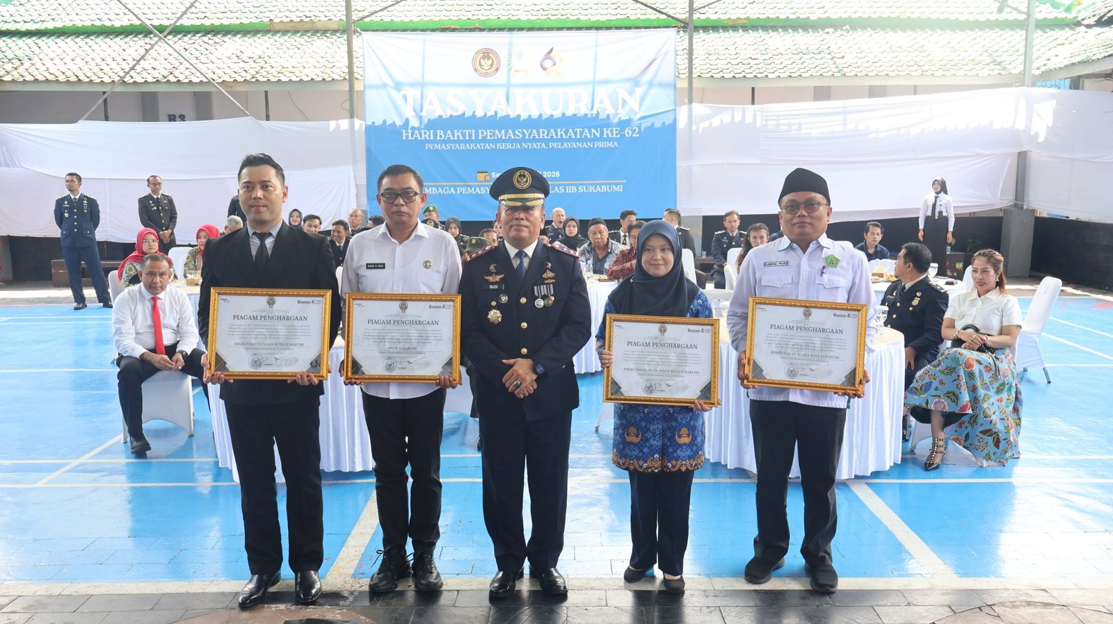 Dalam momentum tersebut, Lapas Sukabumi turut memberikan apresiasi kepada sejumlah instansi yang dinilai berkontribusi besar terhadap pembinaan dan pelayanan, di antaranya Dinas Perhubungan, Kementerian Agama, Dinas Lingkungan Hidup, serta Badan Narkotika Nasional Kabupaten (BNNK).