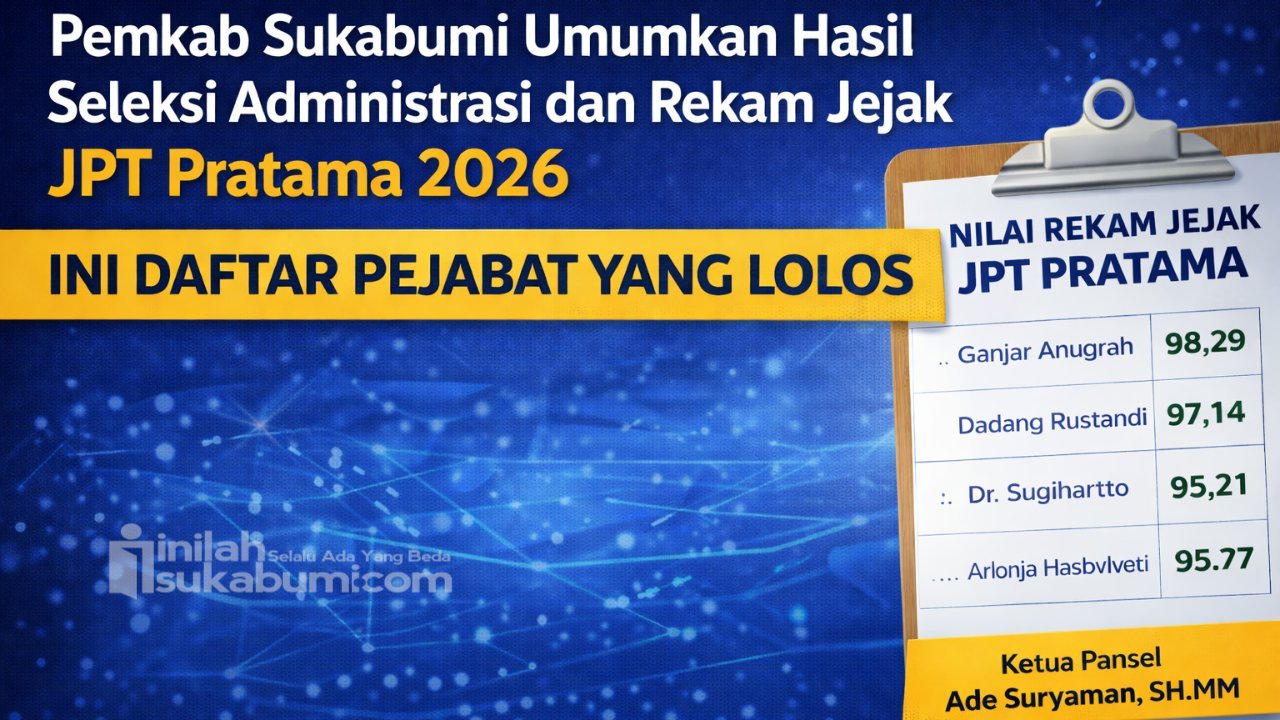 INILAHSUKABUMI.COM – Pemerintah Kabupaten Sukabumi resmi mengumumkan hasil seleksi administrasi dan penelusuran rekam jejak Seleksi Terbuka Jabatan Pimpinan Tinggi (JPT) Pratama Tahun 2026. Pengumuman ini disampaikan melalui dua dokumen resmi Panitia Seleksi (Pansel) yang ditandatangani Ketua Pansel, Ade Suryaman.