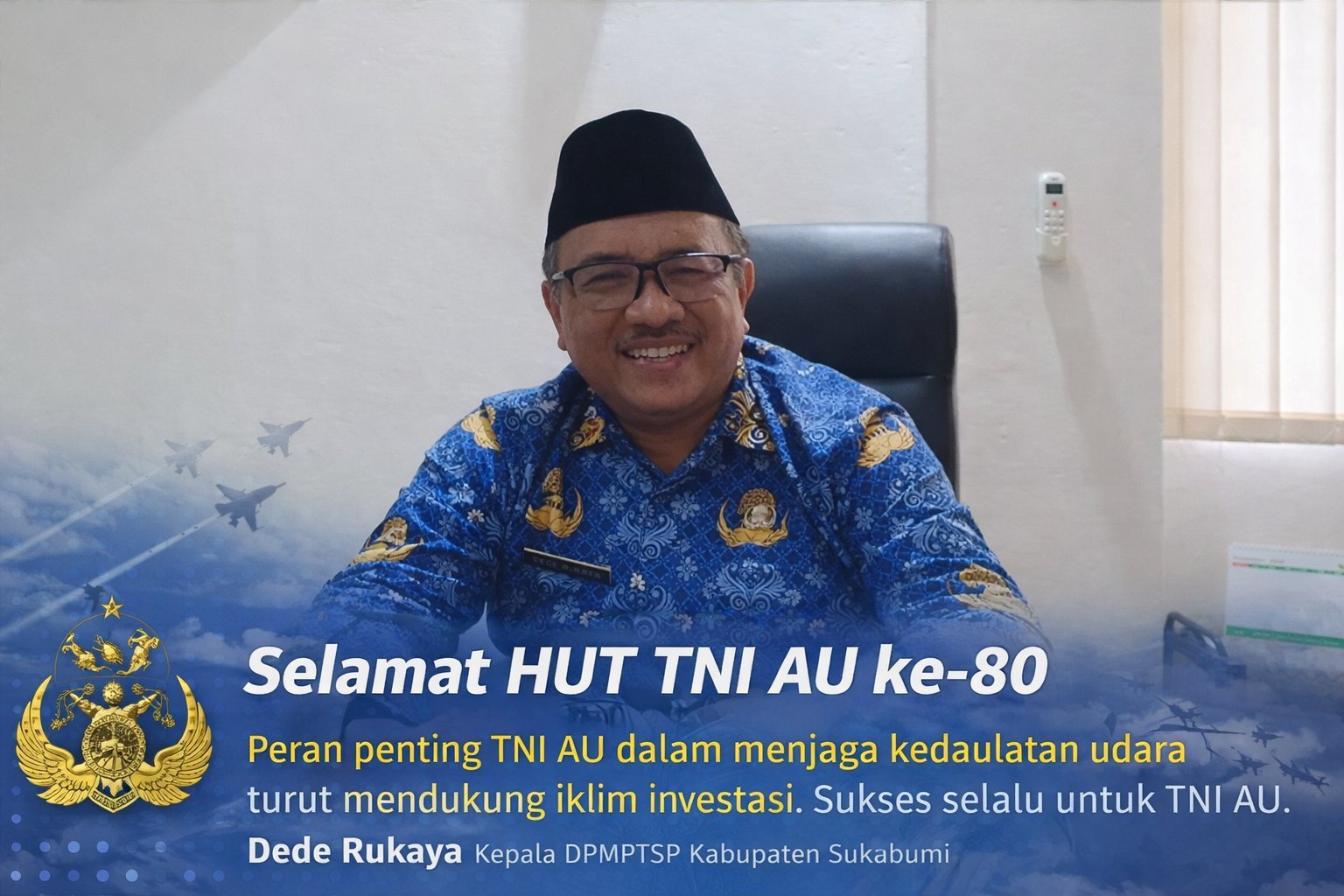 “Selamat HUT ke-80 TNI AU. Kami melihat peran TNI AU sangat vital dalam menciptakan situasi yang aman dan kondusif. Ini menjadi salah satu faktor penting yang mendorong kepercayaan investor untuk menanamkan modal di daerah,” ungkapnya.