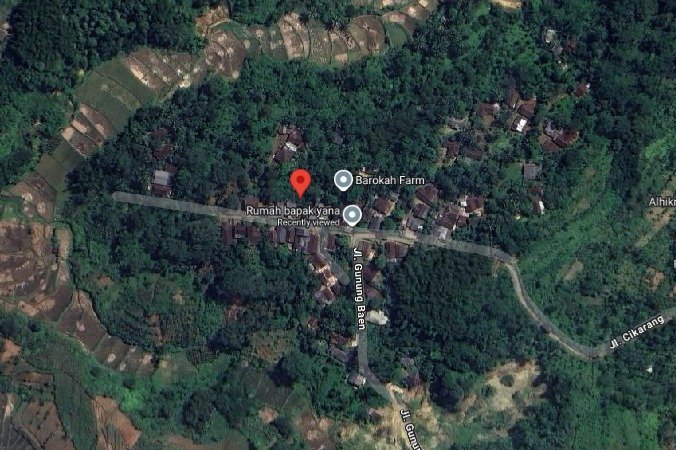 Hasil pengecekan koordinat menunjukkan lokasi pusat gempa berada di wilayah Desa Karangjaya, Kecamatan Gegerbitung, Kabupaten Sukabumi.