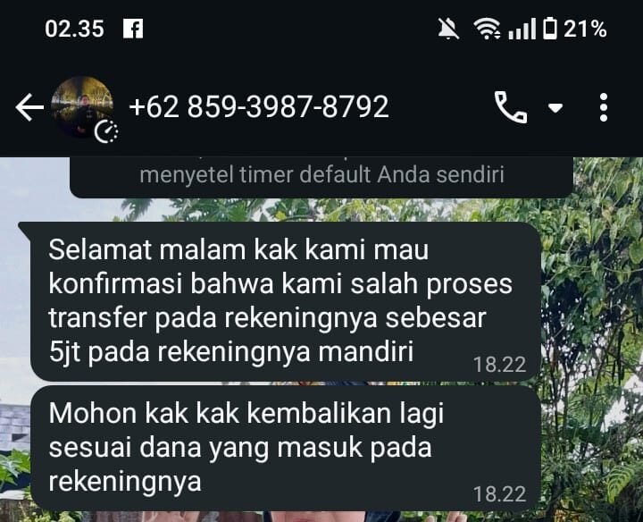 Kejadian bermula saat Ayu menerima pesan WhatsApp dari seseorang yang mengaku salah mentransfer uang sebesar Rp5 juta. Tanpa curiga, Ayu mengembalikan uang tersebut ke rekening yang disebutkan. Tak lama kemudian, ponselnya dibanjiri notifikasi tagihan pinjol ilegal bernilai jutaan rupiah.